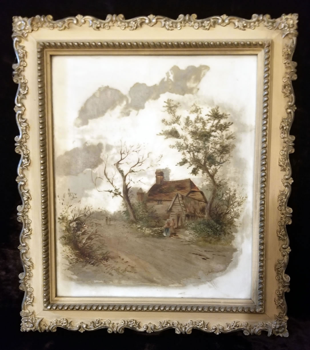 WEECOMPANY.COM - Antique Oil on White Slate signed M. C.